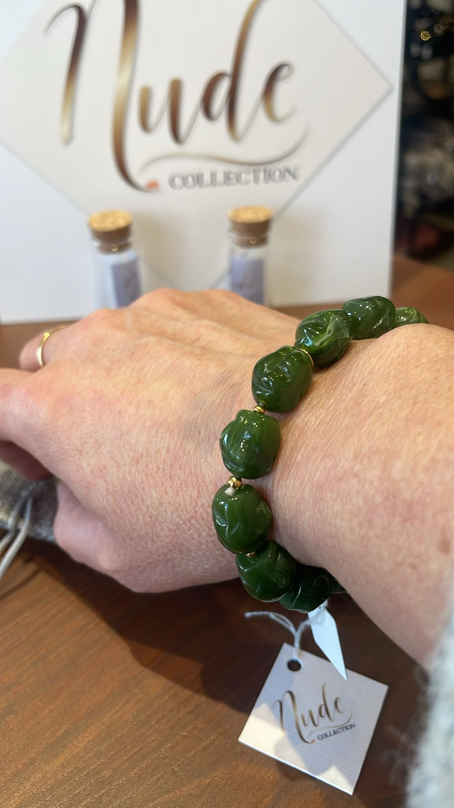 Élégant et audacieux à la fois, ce bracelet en résine vert profond apporte une touche naturelle et lumineuse à votre poignet.