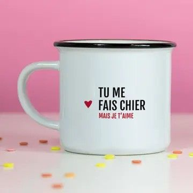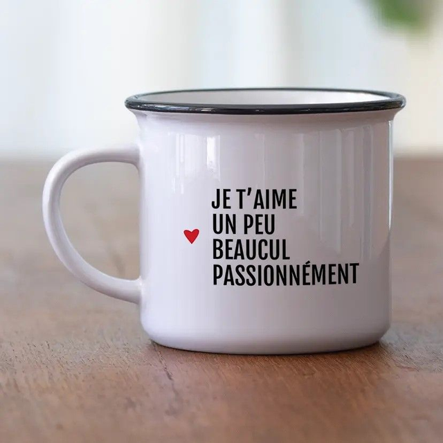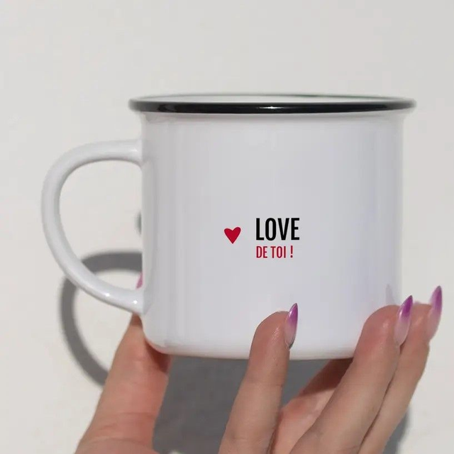 Nos mugs en céramique style émaillé blanc avec contour noir allient simplicité, modernité et émotion. Chaque modèle est imprimé avec un message d’amour unique :