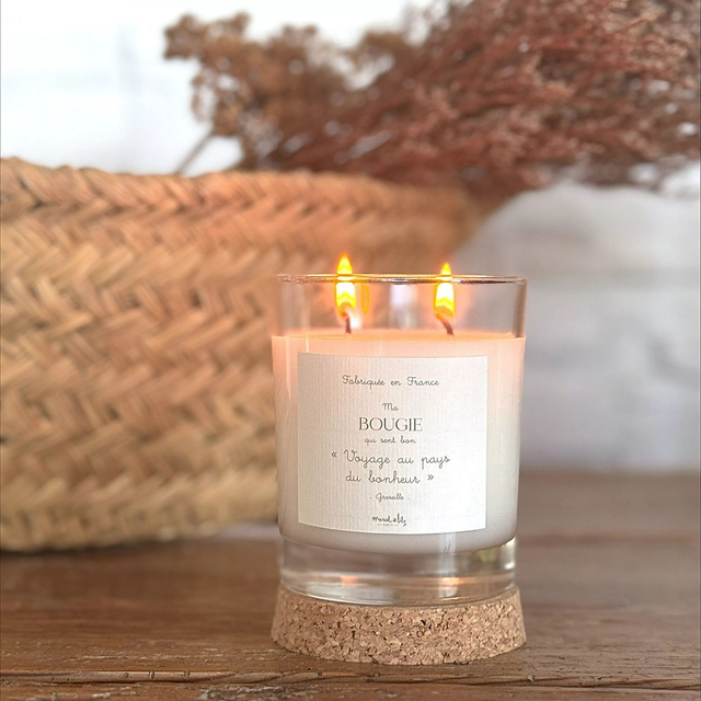 Bougie végétale - 60h - "Voyage au pays du bonheur" 220Gr