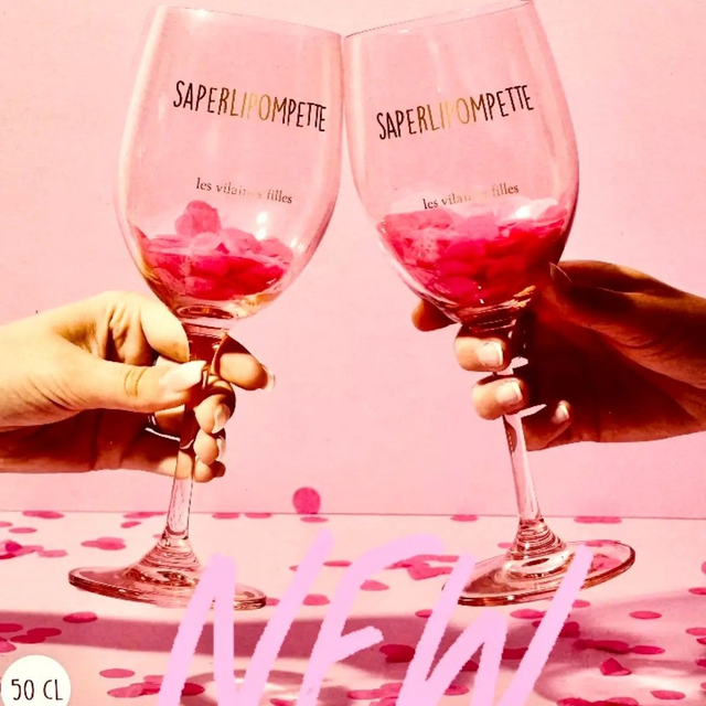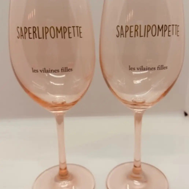 Coffret de 2 verres "saperlipompette" de couleur rose, vendus dans une jolie boite.